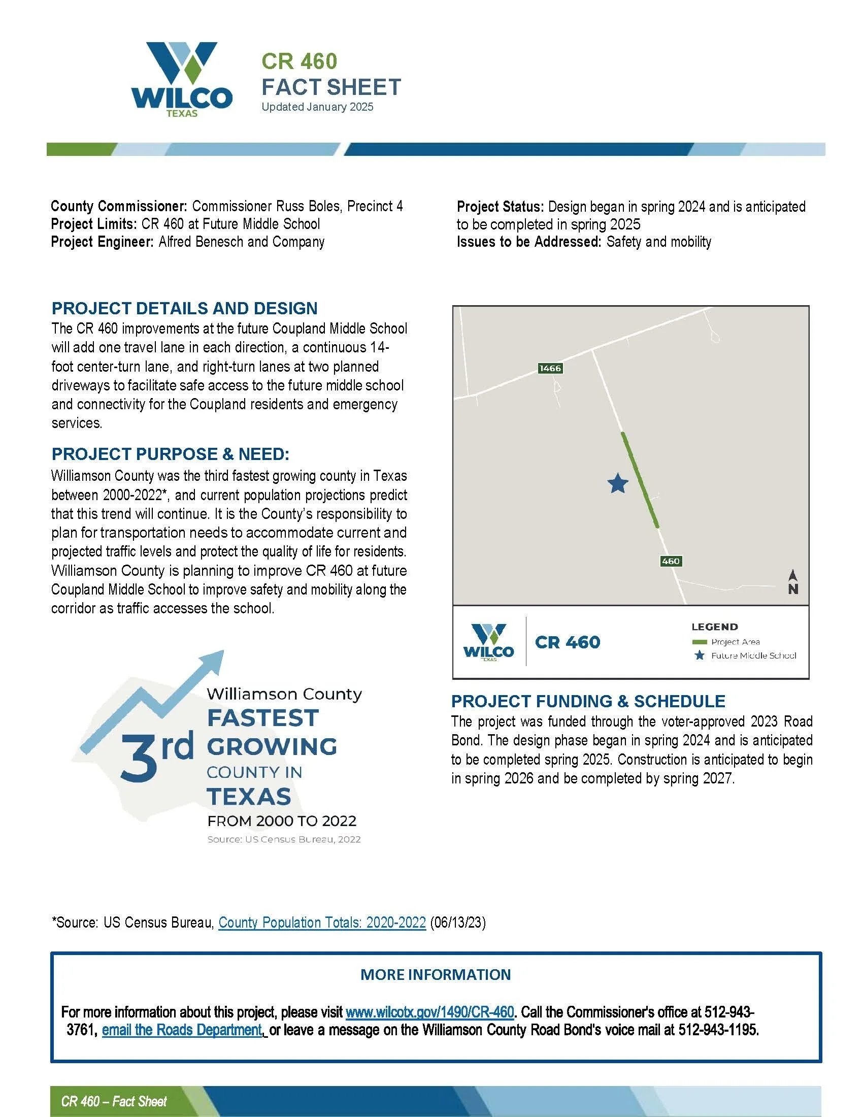 Williamson County Road Bond CR 460 Project fact sheet, 2025