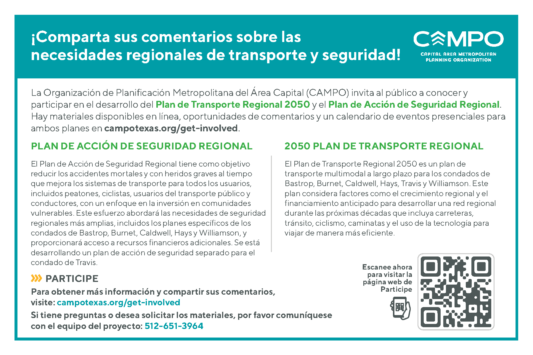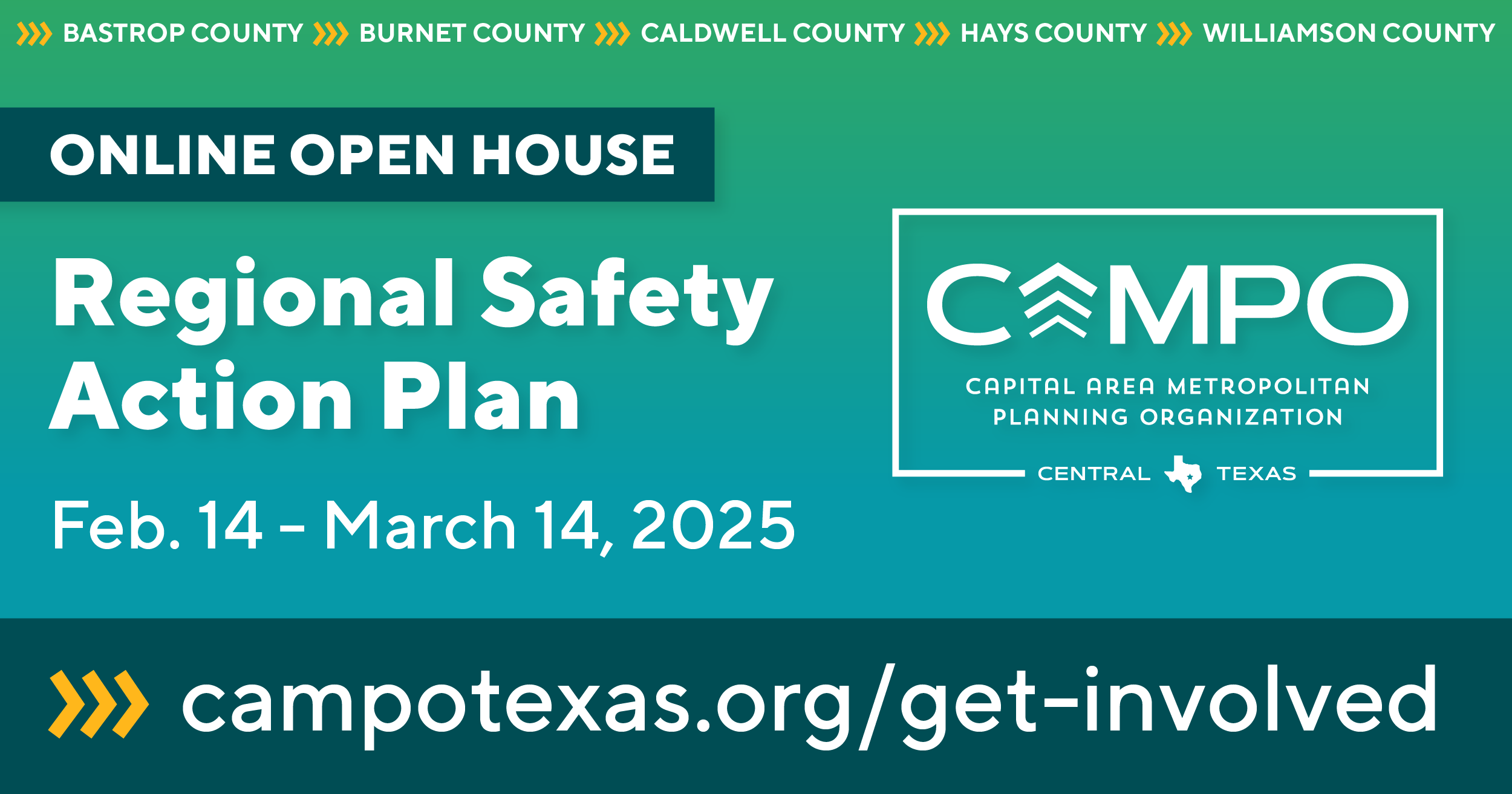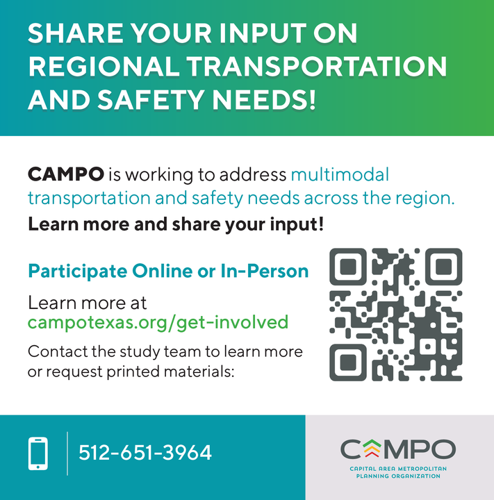 Overview: CAMPO is developing a Regional Safety Action Plan (RSAP) to enhance traffic safety across its six-county region. The plan aims to reduce and ultimately eliminate fatal and serious-injury crashes while improving transportation systems for all users. This data-driven effort is also rooted in extensive community involvement to ensure that the needs, concerns, and lived experiences of local residents inform safety strategies.